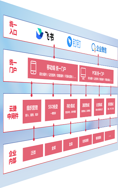 对协作平台提供支持服务,,支持企业应用与协作平台对接,,,包含组织同步、、、、消息集成、、待办集成等。。。。支持目前主流的协作平台:钉钉、、、企微和飞书。。。